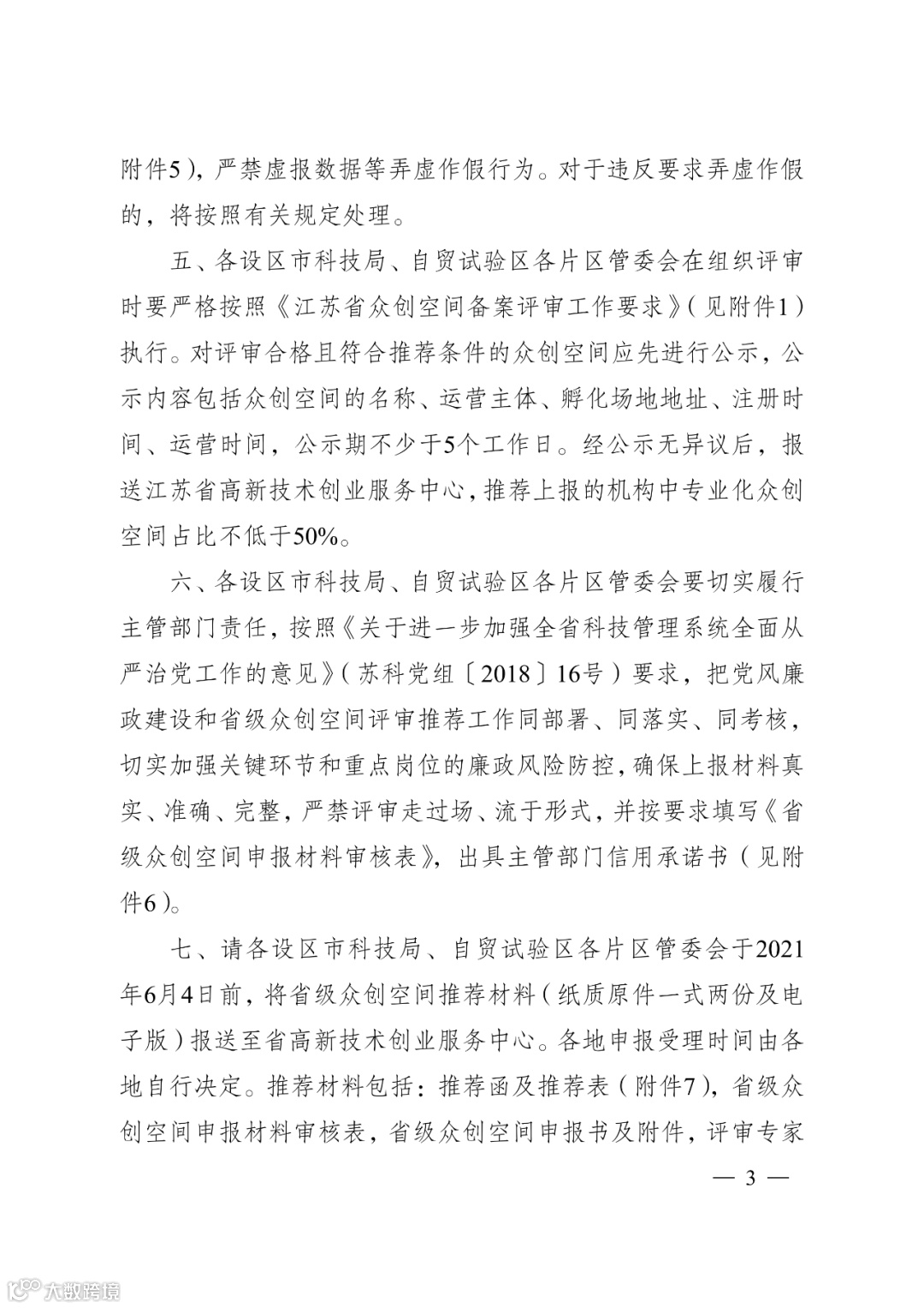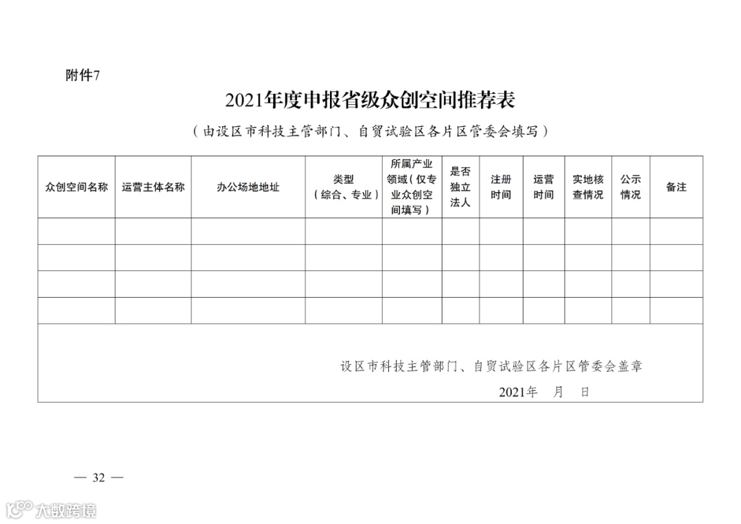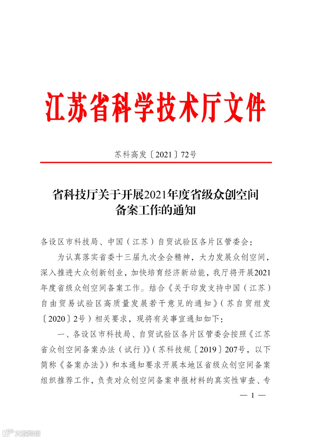 转!省科技厅关于开展2021年度省级众创空间备案工作的通知