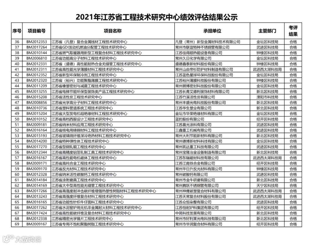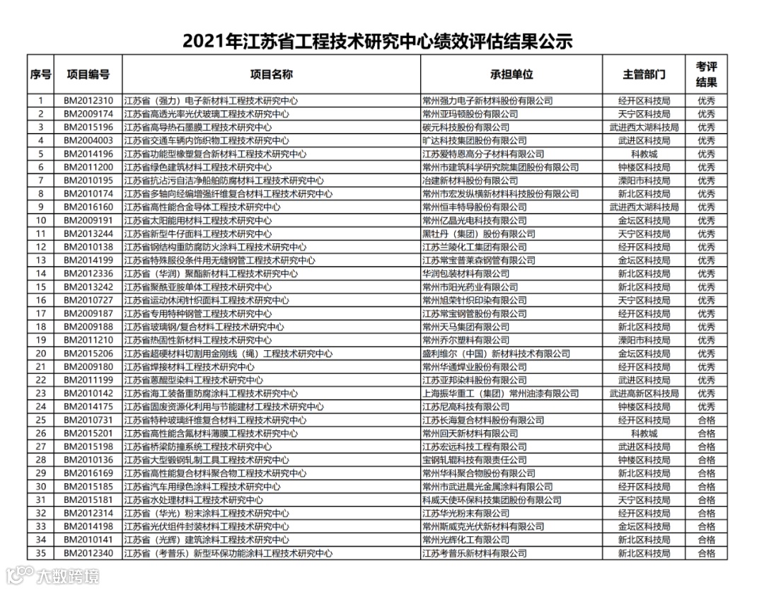 转!关于2021年度省级工程技术研究中心绩效考评结果的公示