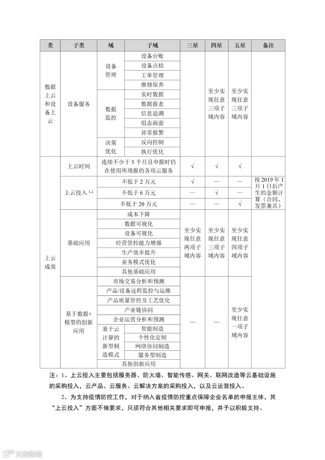2、三星级上云企业应通过采购公有云服务的形式上云;四星和五星级上云企业可通过采购公有云服务、自建私有云或以混合云等形式上云。