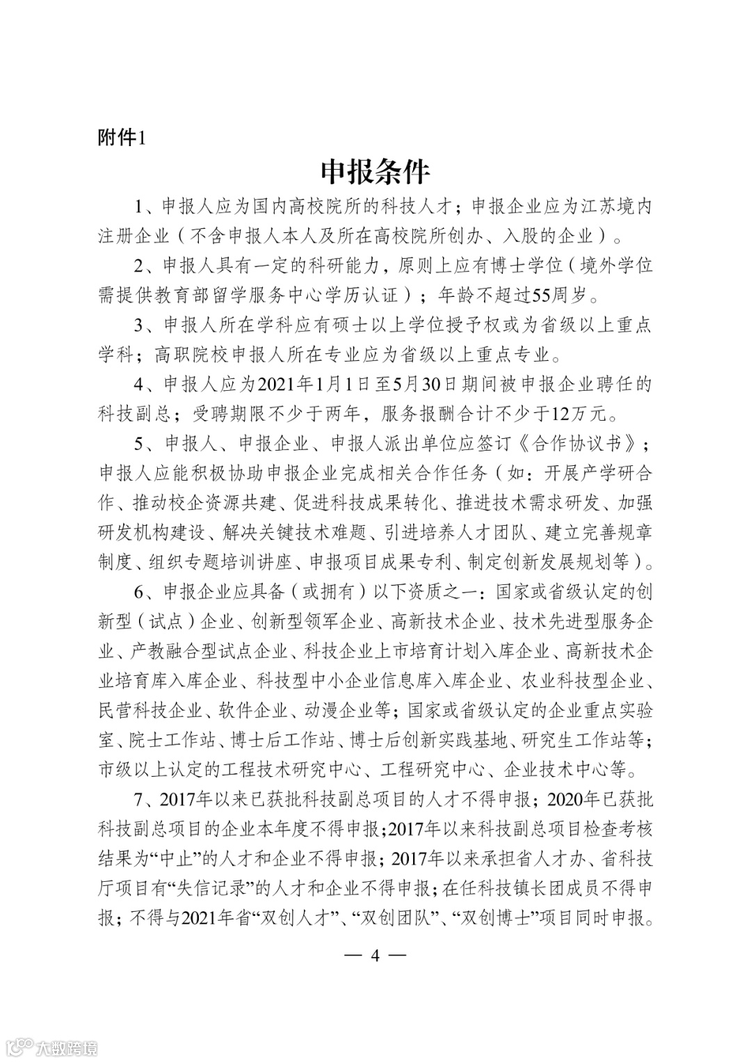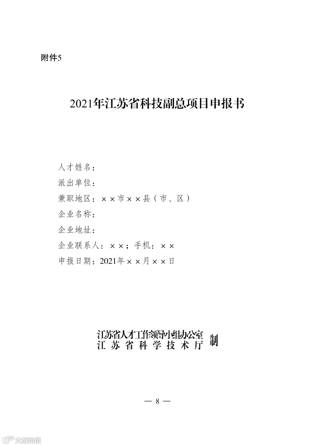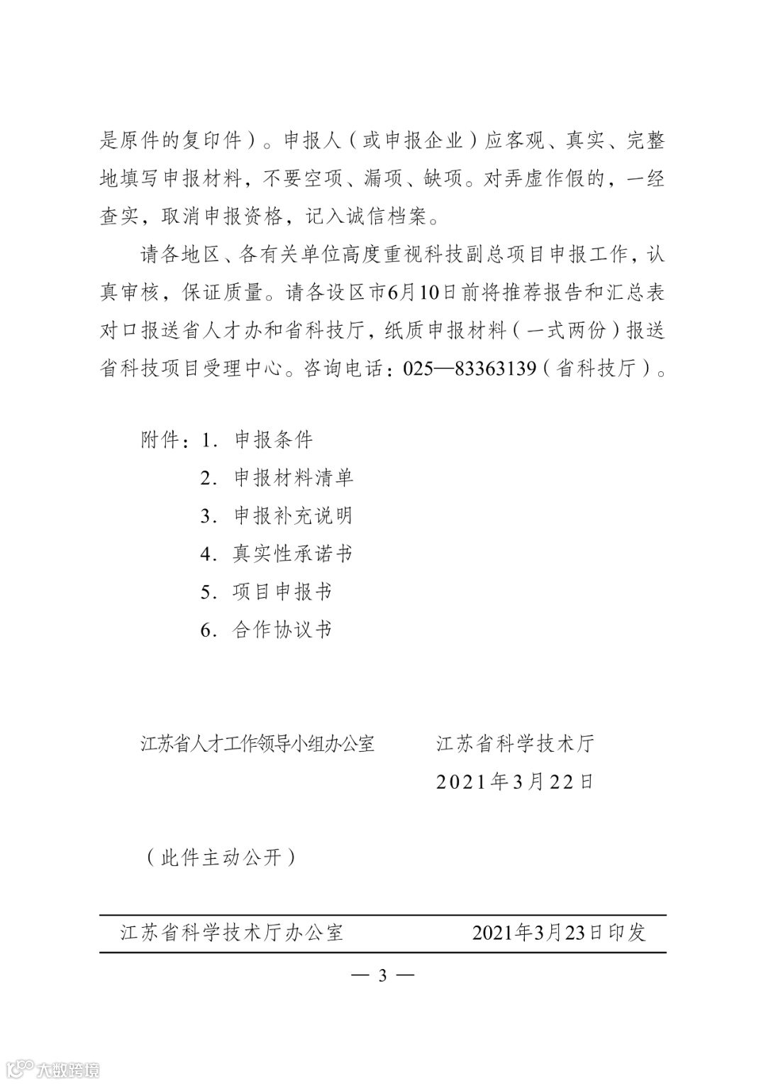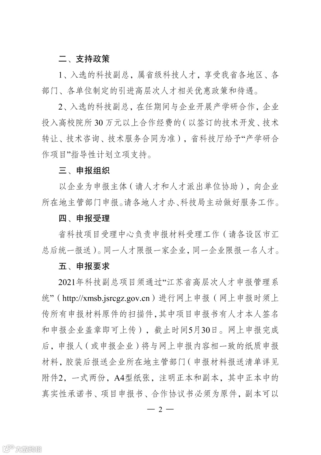 转!关于组织申报2021年江苏省科技副总项目的通知