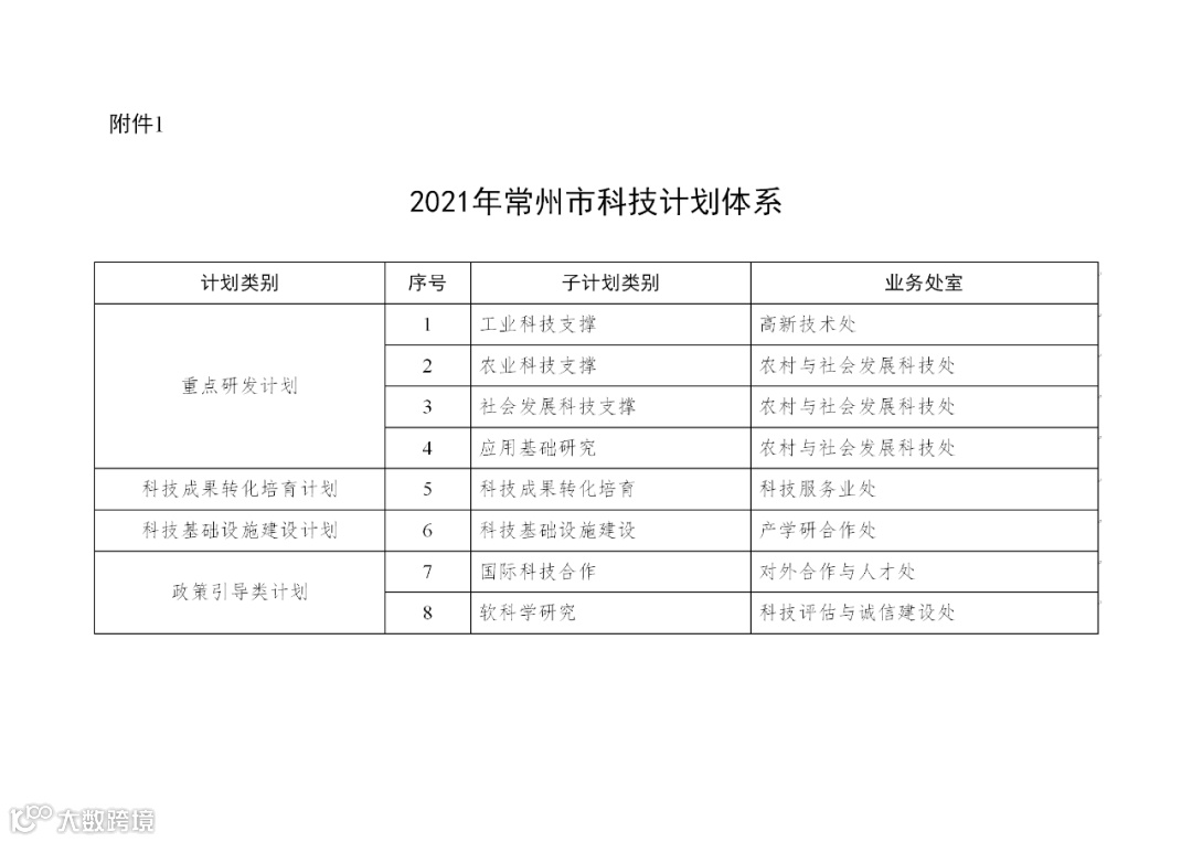 1. 2021年常州市科技计划体系