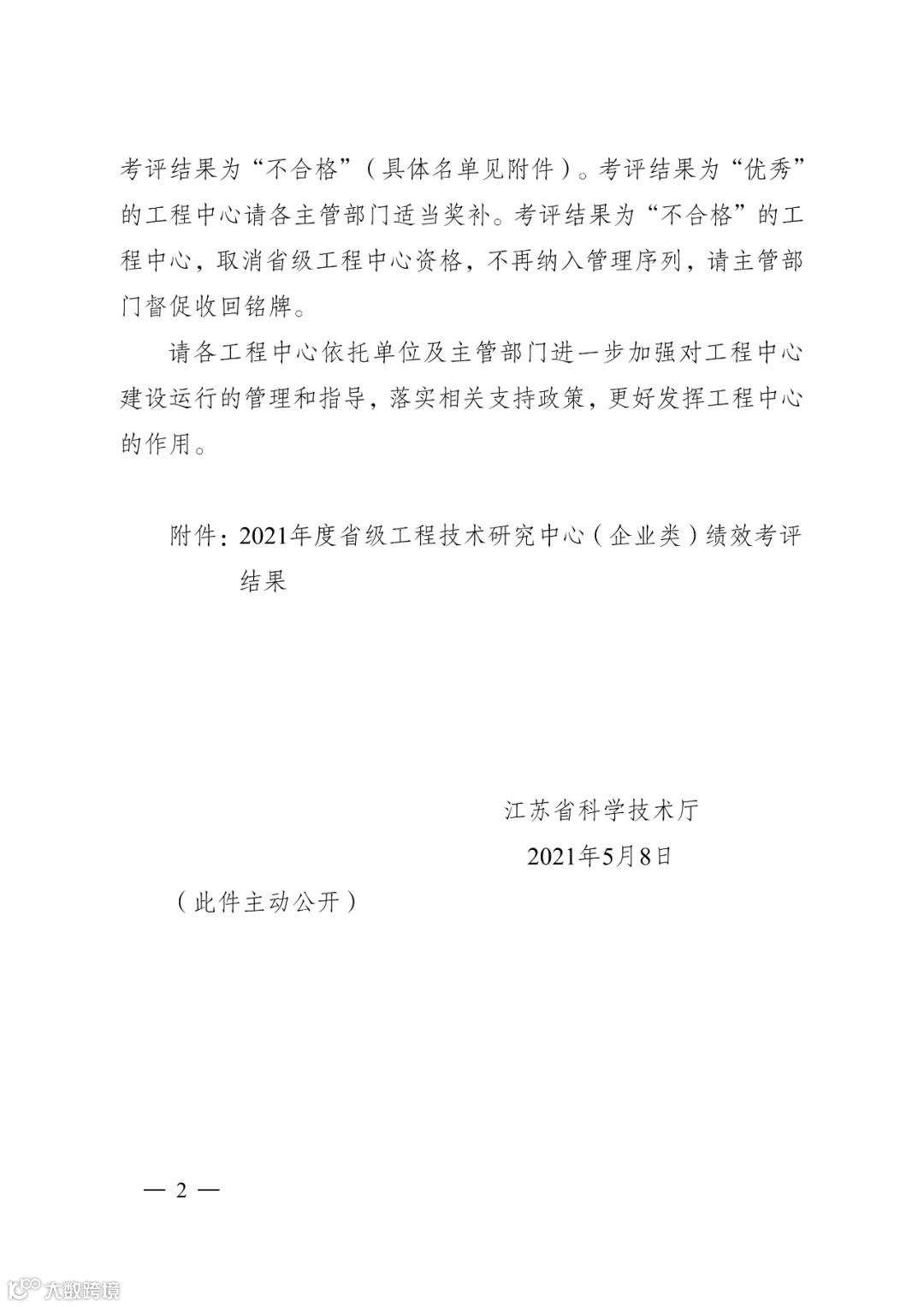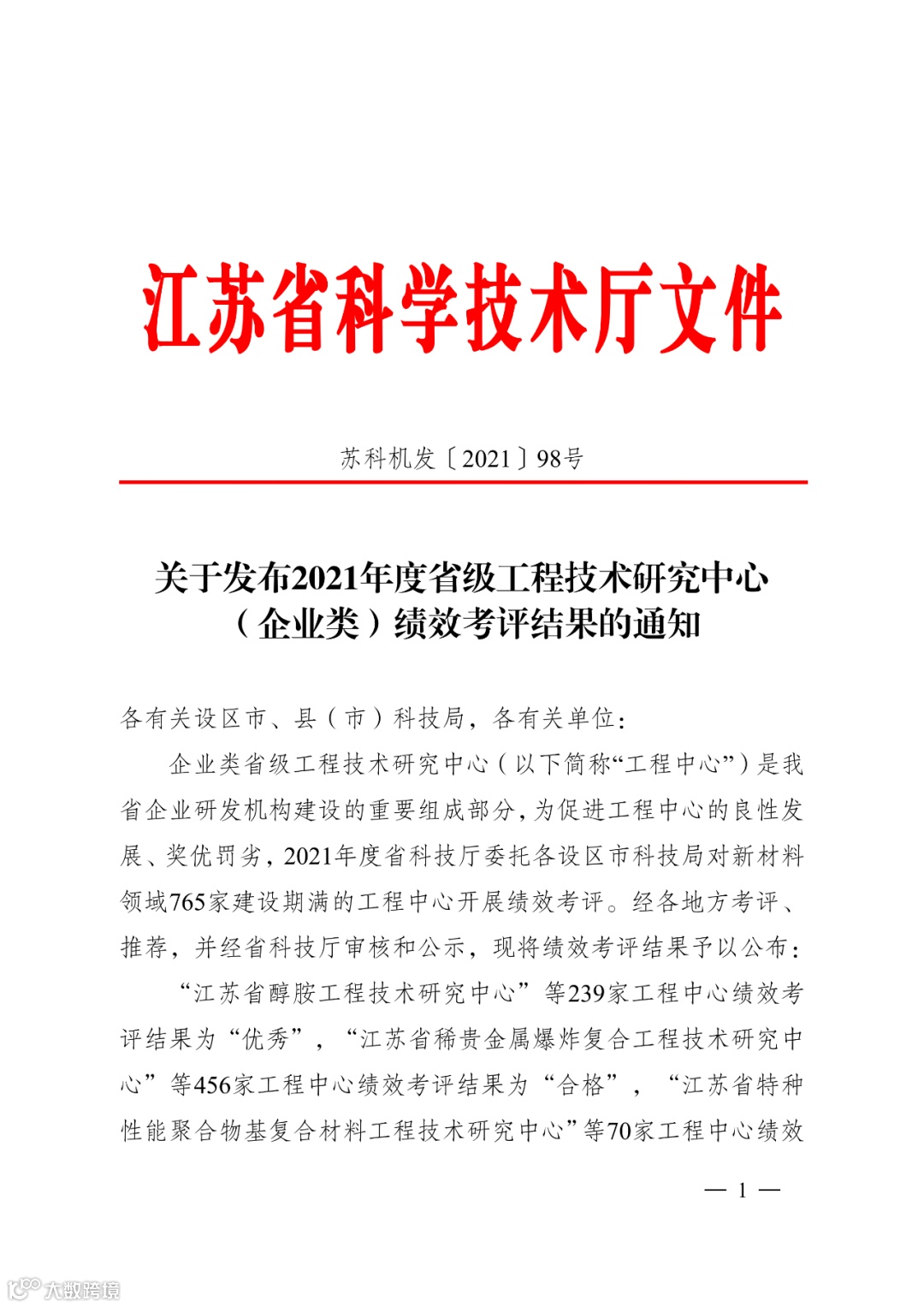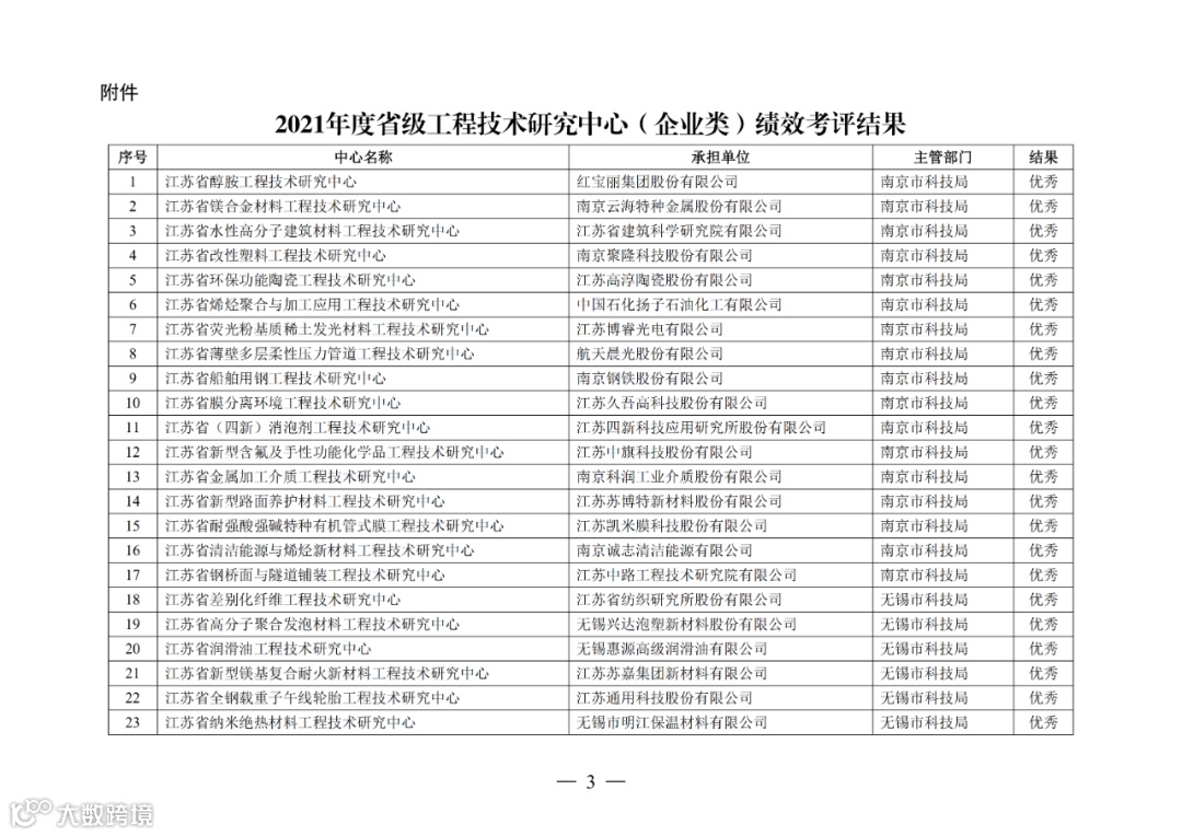 转!关于发布2021年度省级工程技术研究中心(企业类)绩效考评结果的通知