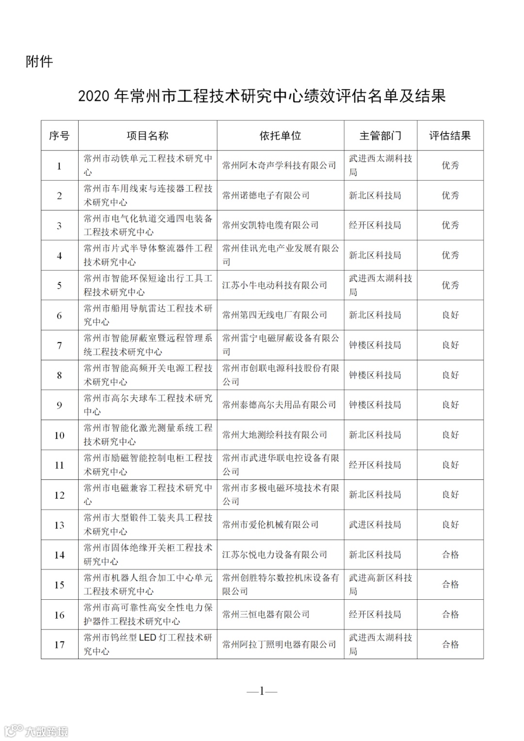附 件:2020年常州市工程技术研究中心绩效评估名单及结果