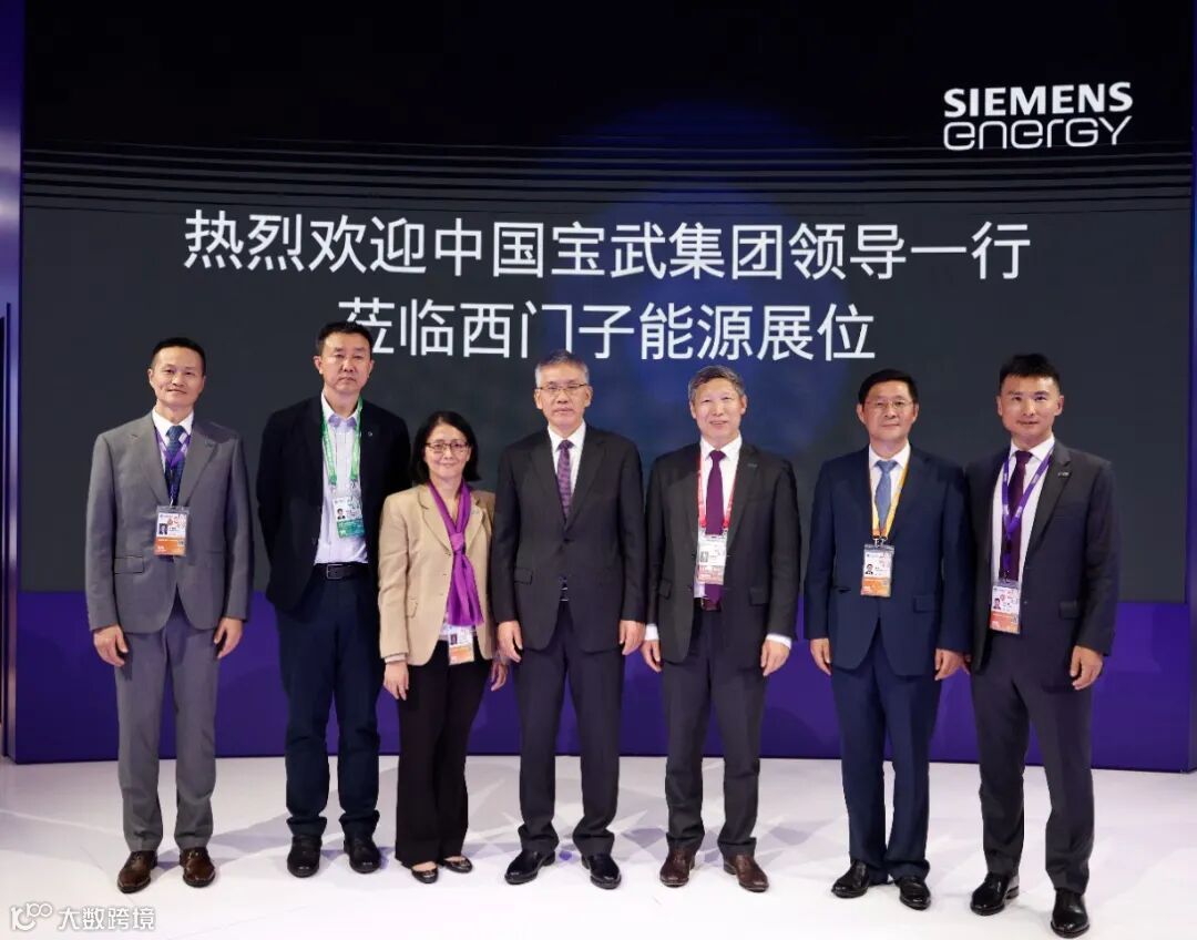 ▲中国宝武钢铁集团有限公司总经理侯安贵一行参观西门子能源展位,并就双方加强合作进行了交流。
