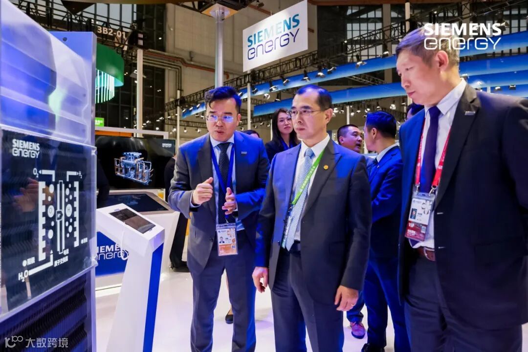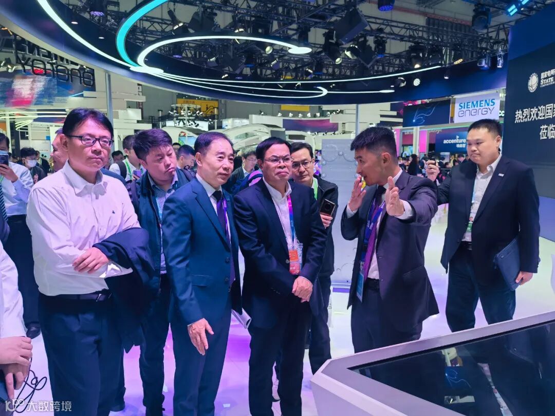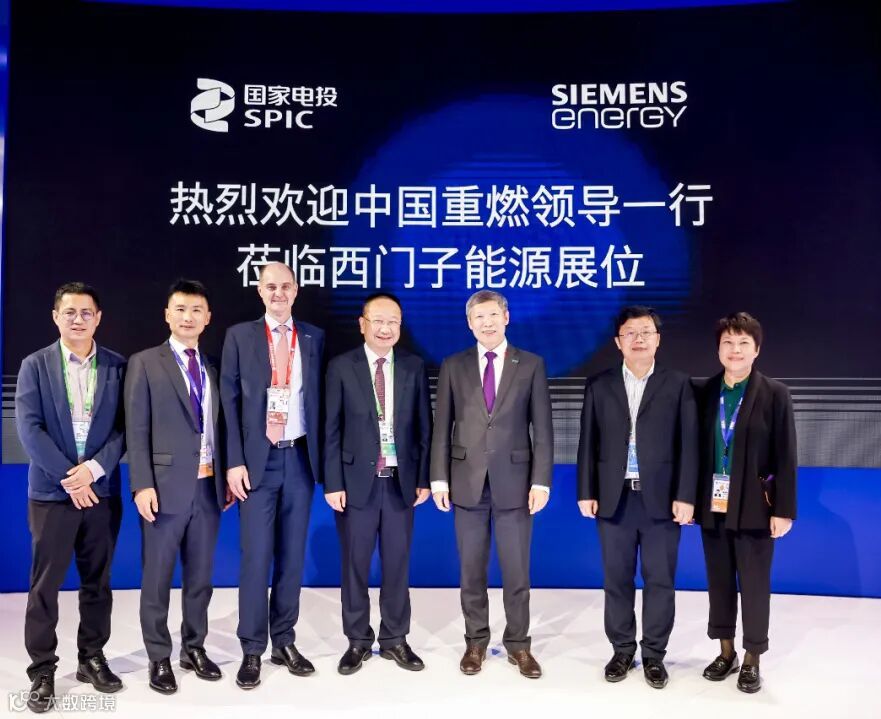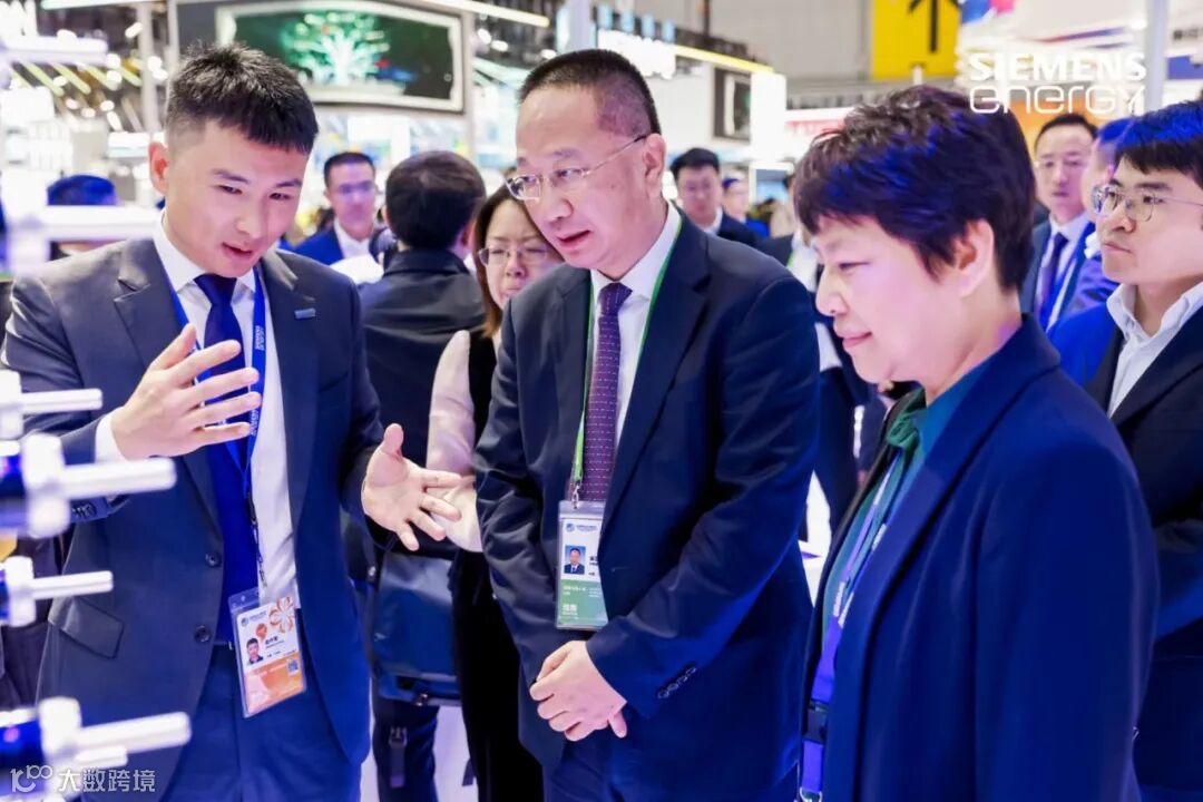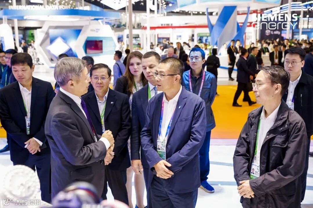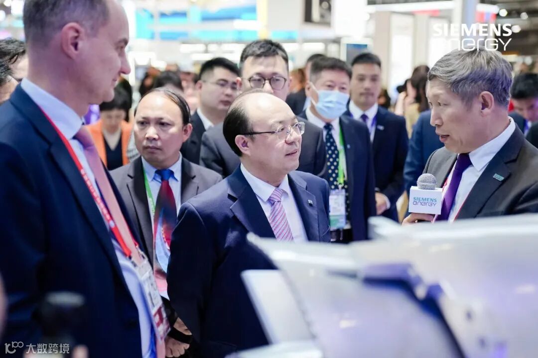 ▲国家电力投资集团有限公司国际合作首席协调官李雪东一行参观西门子能源展位。