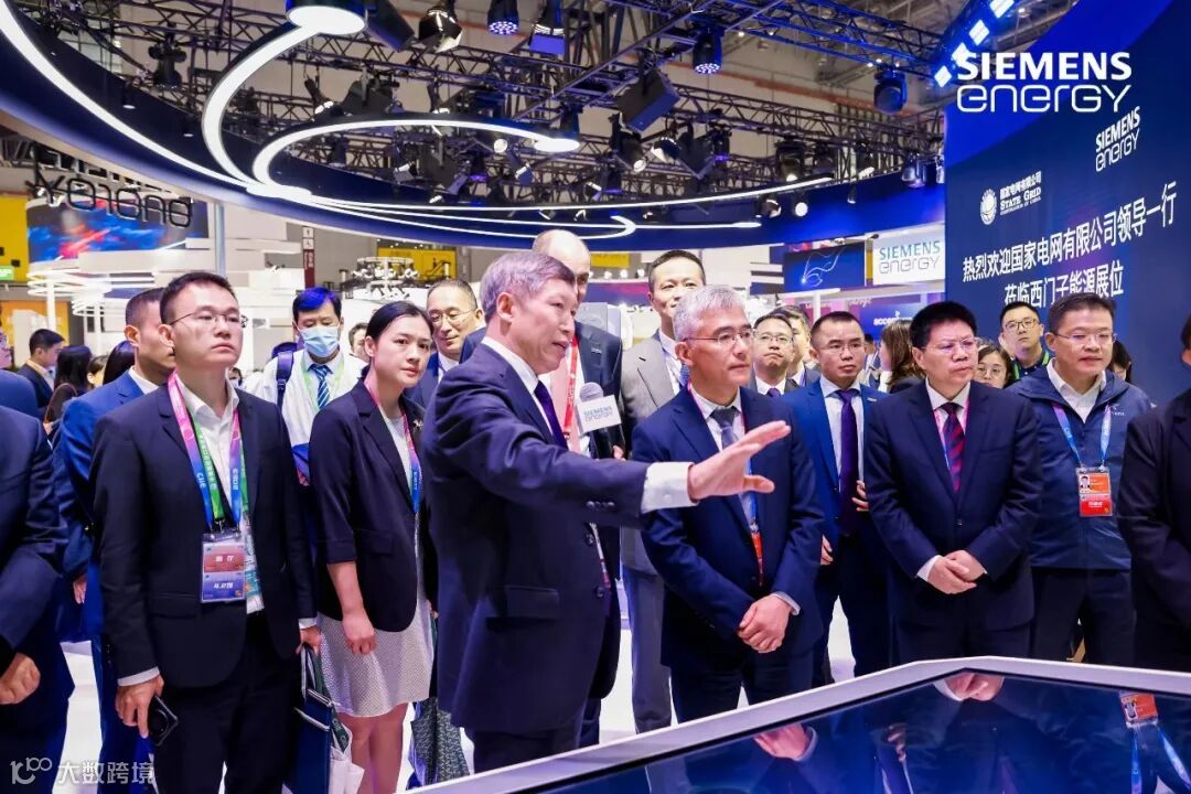 ▲国家电网有限公司领导一行参观西门子能源展位,并就在高压直流输电领域加深合作和共同开拓海外市场进行了交流。