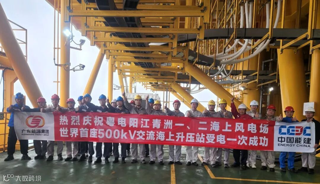 青洲海上升压站并网送电成功后合影