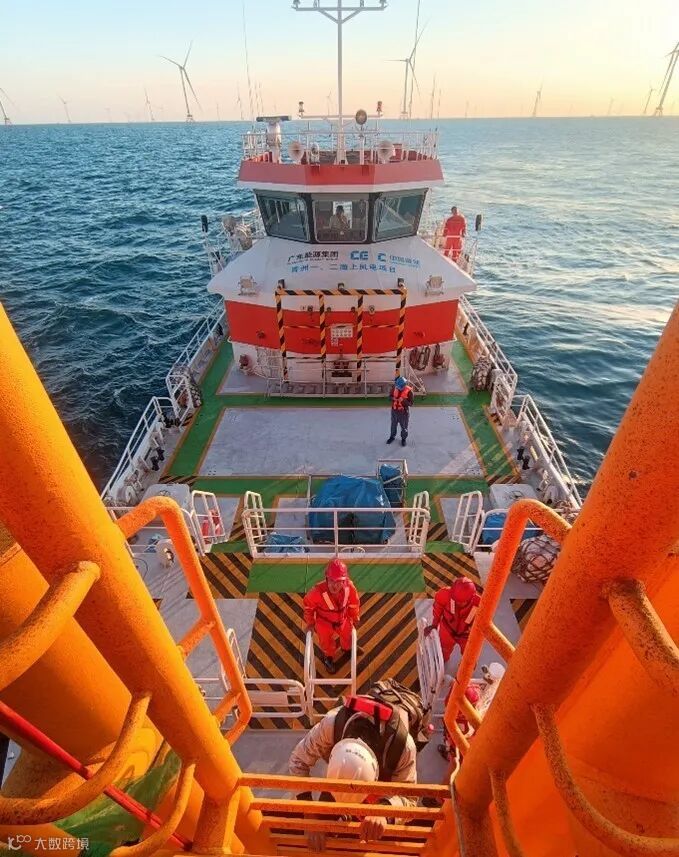 从运输船登上海上升压站