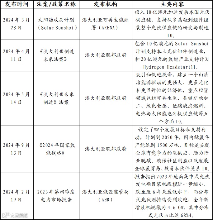 图表25:近年来澳洲涉及光伏政策和计划一览(来源:公开信息整理)