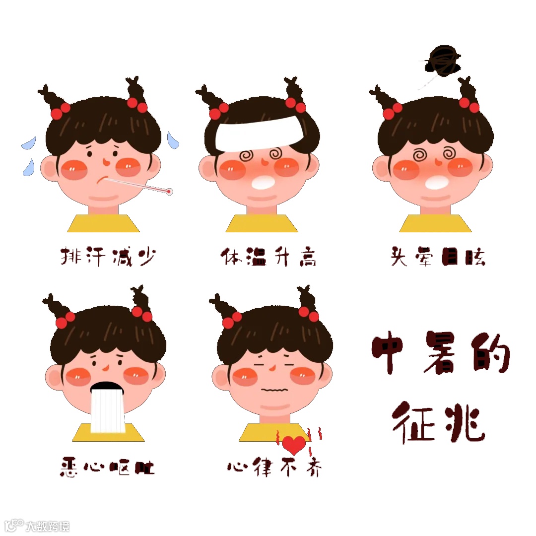 迅速脱离高温环境,及时到阴凉通风处,及时补水,涂抹解暑药物,通常症状可自行消除。