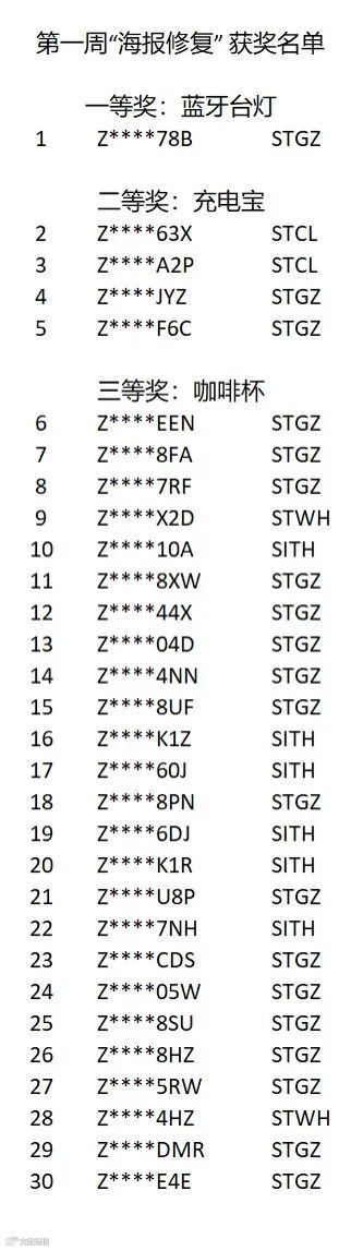 第一周获奖员工名单