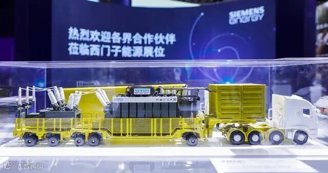 第四届中国国际进口博览会技术装备展区新设能源低碳及环保技术专区,展现低碳化、智能化等行业发展新趋势。西门子能源展示的110千伏移动式变电站模型。