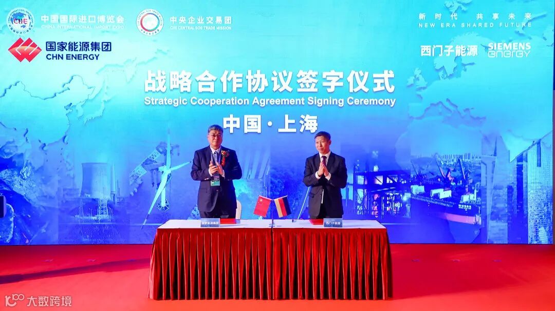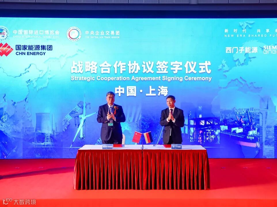 11月5日,在第四届进博会上,国家能源集团党组副书记、总经理刘国跃与西门子能源全球高级副总裁、大中华区首席执行官姚振国分别代表双方签署了战略合作协议,双方在燃机、氢能、海上风电等清洁能源领域全方位加强合作。