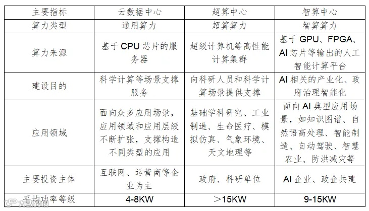 数据中心(IDC,Internet Data Center)是专门用于支持计算和数据处理任务的设施或物理空间,是各大AI训练和部署的物理实体,可以理解为一个大号的计算机及其支持系统。数据中心通常拥有大量高性能的服务器、GPU加速器和专门的存储系统,以提供强大的计算能力并加速深度学习;同时也配备了高速的网络设备和优化的软件框架,以支持高效的数据传输和算法训练通过这些专门的配置和优化;能够为各种规模和复杂度的AI工作负载提供可寂稳定的计算环境,并满足大规模数据存储、备份和分析的需求,为各行各业的AI应用和服务提供了强大的支持。数据中心可按算力分为云数据中心、智算中心、超算中心三种。