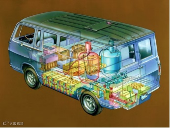 1966年,通用汽车公司推出了第一台氢燃料电池车Electrovan。车上共集成了燃料电池模块32个,最大速度为70mph,续航里程为100-150英里。Electrovan最大功率为160kW,实际稳定运行的额定功率为32kW,氢耗大概在每千瓦时0.4-1.0kg氢气(现代的燃料电池车额定功率普遍为100-200kW)。Electrovan的启动包括外部能源检查、气体泄漏检验、氩气吹扫、氢气回路激活等流程,全部执行完毕通常需花费3个小时。