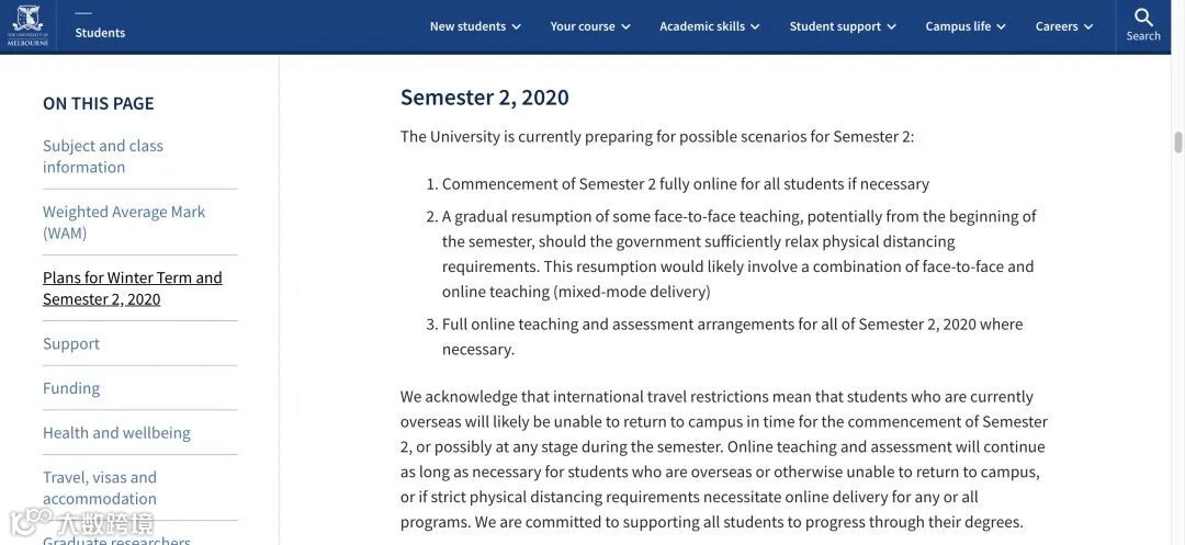 根据墨尔本大学官网通知,大学正在准备第二学期的可能方案,如有必要,所有学生都可以完全在线上进行第二学期的课程。