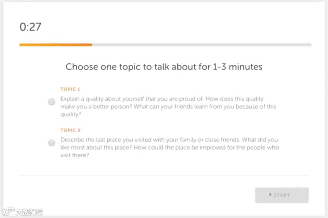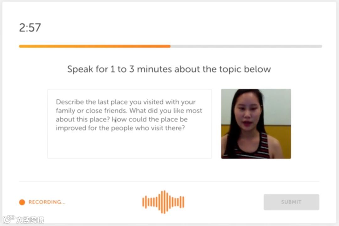 在这道题中,考生被要求针对屏幕中的话题,作一段至少30秒的演讲。