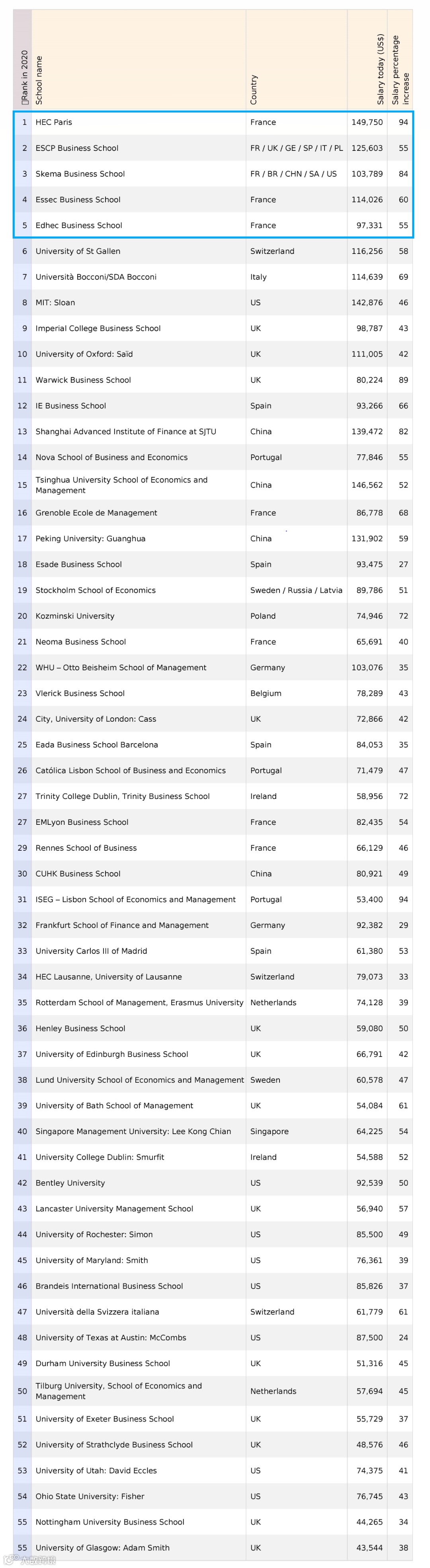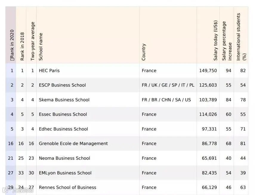 值得一提的是,法国商学院一举占据了榜单的Top 5,这更有力地说明了法国商学院的精英教育体制在全球范围内的卓越实力!