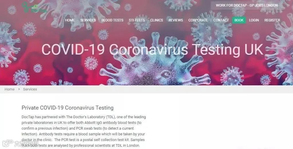 网站链接:https://doctap.co.uk/services/coronavirus-test/