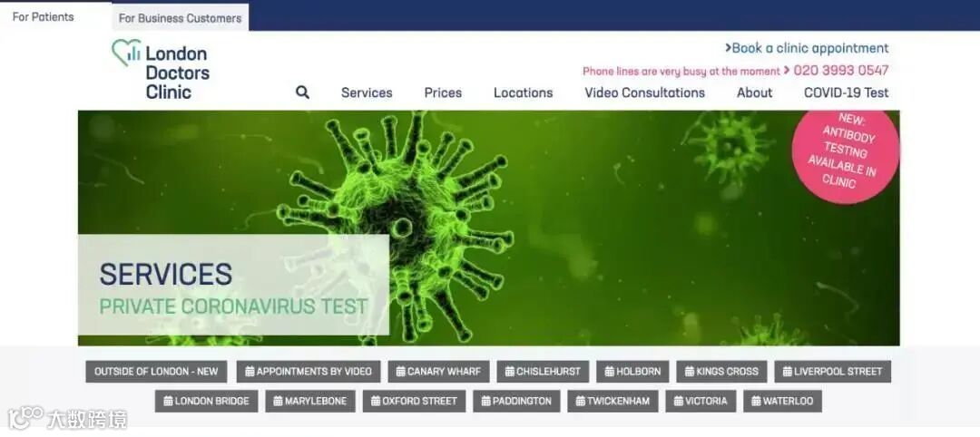 网站链接:https://www.londondoctorsclinic.co.uk/services/private-coronavirus-test/