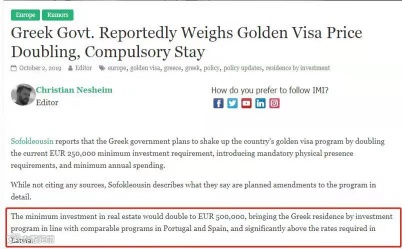 2、雅典、圣岛等热门区域的房产交易受到限制,不低于50万欧的房产只能投资于经济欠发达的偏远地区。(也就是说,在雅典、圣岛等经济发达地区,购买房产将不会自动获得希腊永居身份)