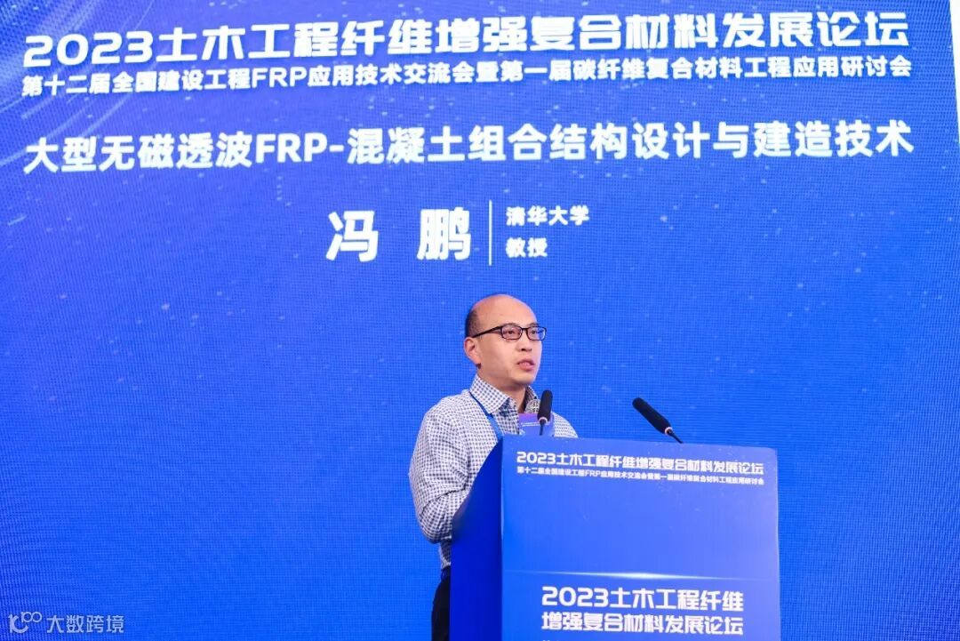 清华大学冯鹏教授的报告主题为“大型无磁FRP-混凝土组合结构设计与建造技术”,针对FRP无磁透波的功能特性介绍了其在工程中的推广应用。