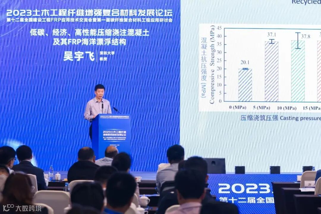 深圳大学吴宇飞教授对低碳、经济、高性能压缩浇注混凝土及其FRP海洋漂浮结构进行报告,介绍了压缩浇注混凝土的性能及其在新型仿生可持续海洋漂浮结构的设计与应用。