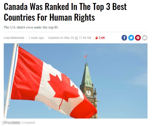 厉害了!加拿大再次在国际上得到好评和认可! 喜提全球最佳国家第二名,同时在关注人权方面名列第三。