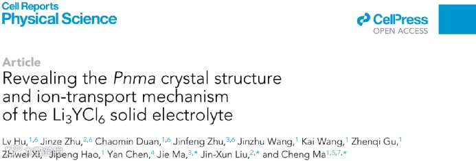 中国科学技术大学的马骋教授与同校的刘进勋教授以及上海交通大学的马杰教授合作,通过中子粉末衍射和第一性原理计算,证实了Li3YCl6固态电解质的真实晶体结构属于正交晶系(Pnma空间群),而不是普遍认为的三方晶系(