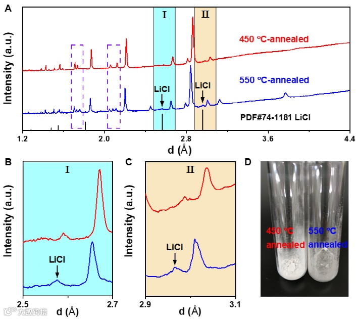 图1 降低退火温度消除高结晶度Li3YCl6材料中的杂质。