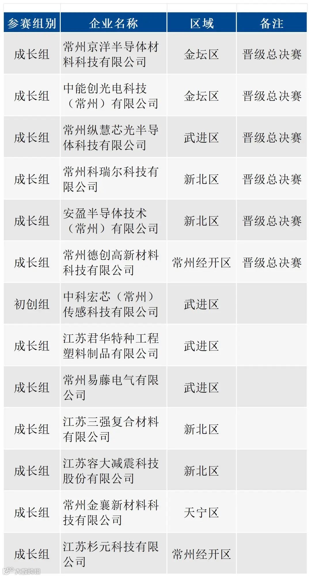 日前,由科技部、财政部、教育部、中央网信办、全国工商联等单位共同指导的第十二届中国创新创业大赛全国赛(半决赛)已全部圆满结束,共评选产生了607家大赛优秀企业,其中包括100家晋级全国总决赛的企业。代表常州市出征的18家企业再创佳绩,有6家企业成功晋级全国总决赛,占全省晋级总数的26%,晋级数位列全省第一。同时,我市共有13家企业被评为“优秀企业”,其中成长组企业12家,位列全省第二。