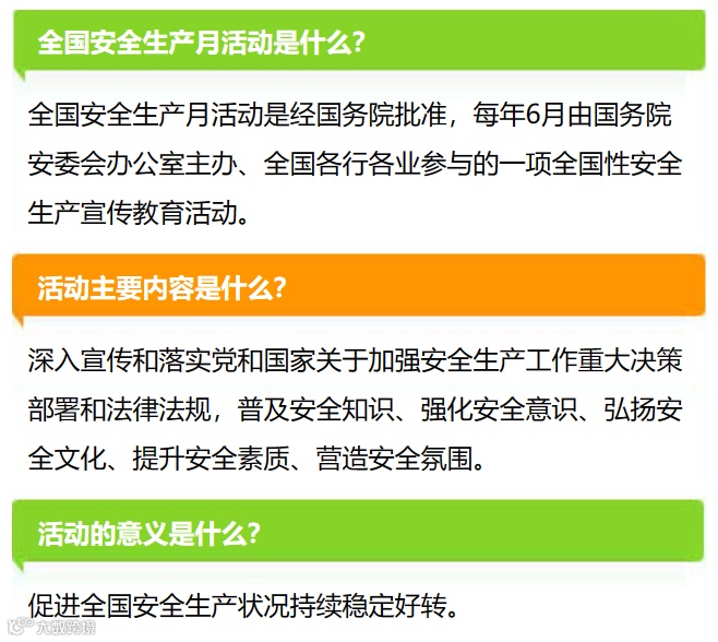 从2002年,将连续开展11届的“安全生产周”改为“安全生产月”,时间由每年5月改为6月,同时部署开展以新闻宣传和舆论监督为主要形式的“安全生产万里行”活动。