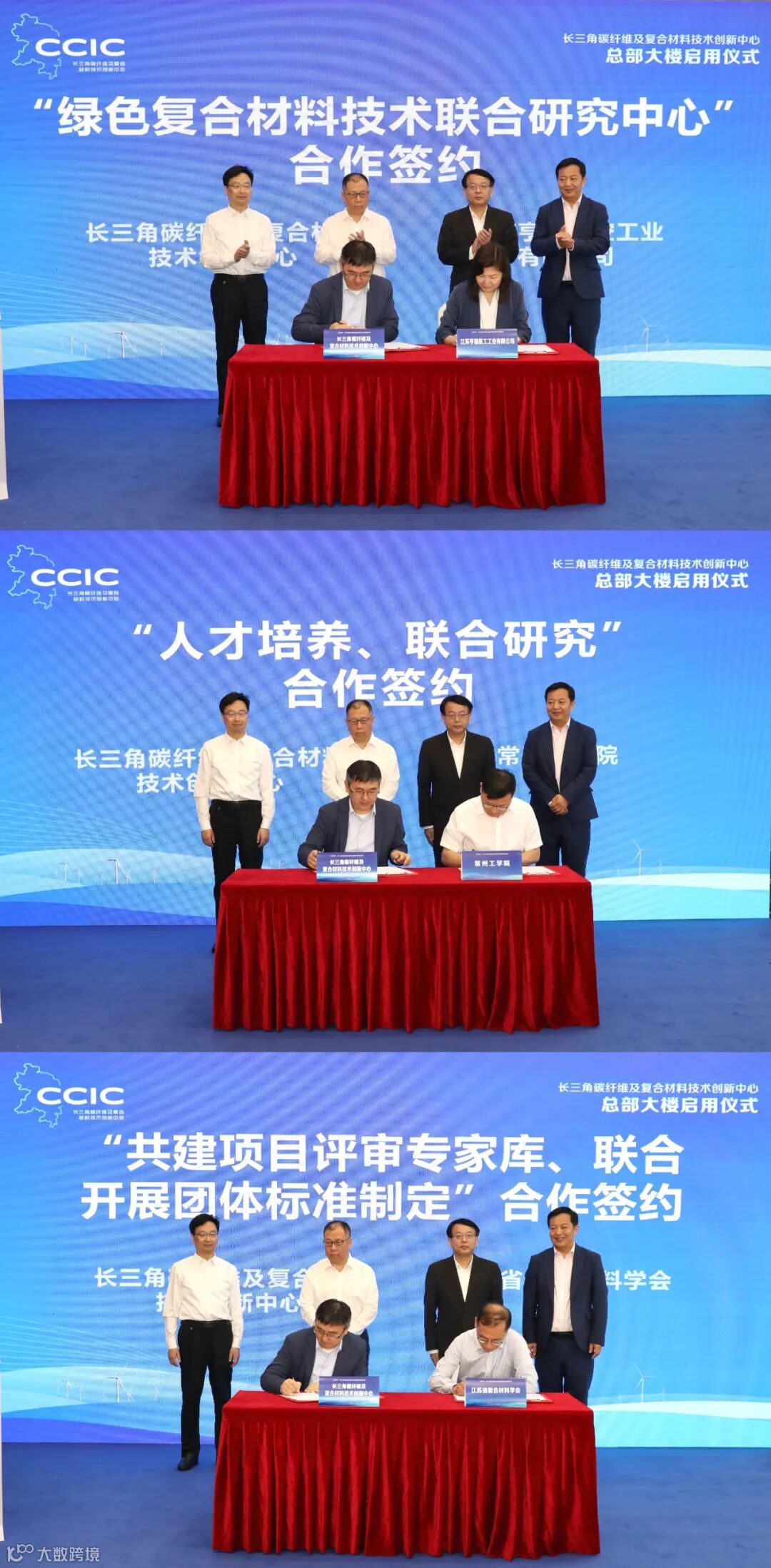现场,碳纤维复材拉索项目和绿色复材项目入驻创新中心;3项合作进行签约,分别为:创新中心与江苏亨瑞航工工业有限公司合作成立绿色复合材料技术联合研究中心,与常州工学院就人才培养、联合研究等方面开展战略合作,与江苏省复合材料学会就共建项目评审专家库、联合开展团体标准制定等方面开展合作。
