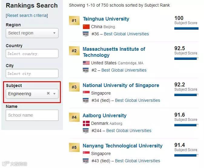 2020 US News工程专业排名TOP5: