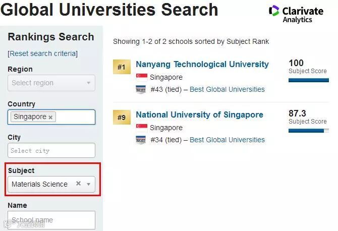 在材料科学专业排名中,NTU和NUS分列世界第1及第9。