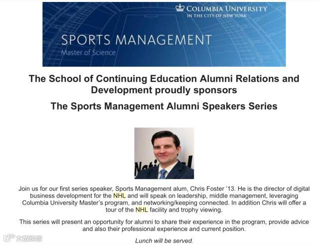 另外,哥大体育管理项目与许多大大小小的体育公司、体育组织有着紧密的联系,许多机构招收实习生会直接联系学院职业发展办公室的老师。笔者这次的实习即是如此。