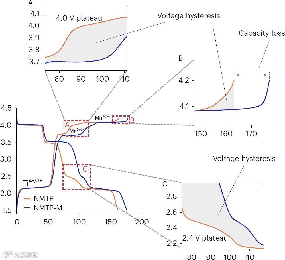 图3 Na3MnTi(PO4)3的电压迟滞和容量损失