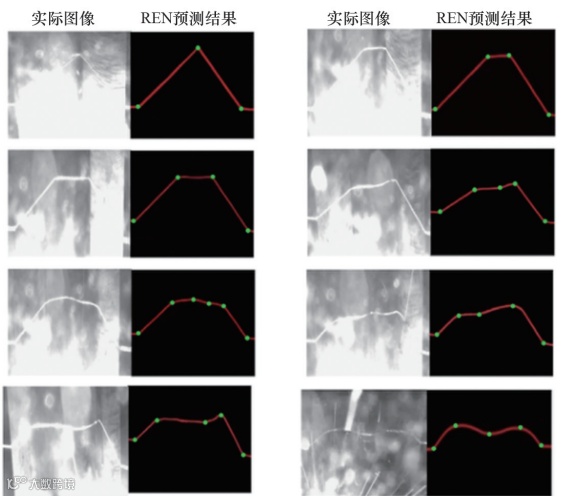 Chen等采用一种基于改进的YOLOv5算法对焊缝进行类型分类和识别。另外,支持向量机(SVM)、卷积神经网络(CNN)、YOLO(you only look once)等算法在机器人巡检过程中常用于视觉系统的缺陷目标的识别与检测。服务机器人在交通站内导航需要精确的环境感知能力,搭载摄像机等传感器对目标进行检测和定位,从而根据目标的标签和位置执行动作。Singh等将服务机器人搭载的RGB-D相机的实时视频流作为输入,提出一种基于YOLO架构的目标检测和识别模型,YOLO算法在提高目标检测和实时定位精度之间保持了适当的平衡。Liu等提出基于CGAN(conditional generative adversarial network)原理的复原与提取网络(REN),可从含有强干扰的接缝图像中可靠、快速地提取特征信息,使用REN提取特征信息的结果如图10所示,与实际结果基本一致。
