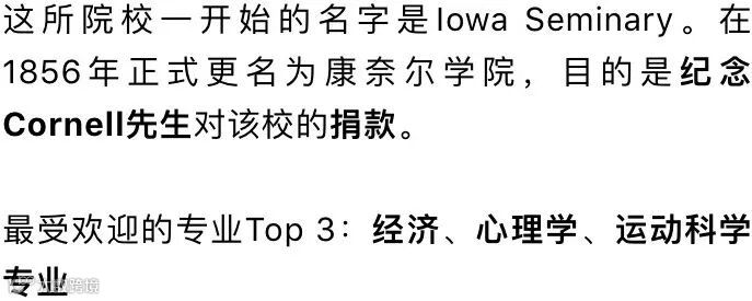 康奈尔学院Cornell College,很多家长和同学应该都是第一次听说康奈尔学院。这是一所私立文科学院,位于爱荷华州。U.S. News文理学院排名#81