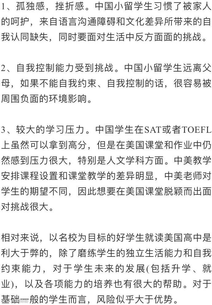 当然,国内学生就读美国高中也存在一定的弊端或者说风险: