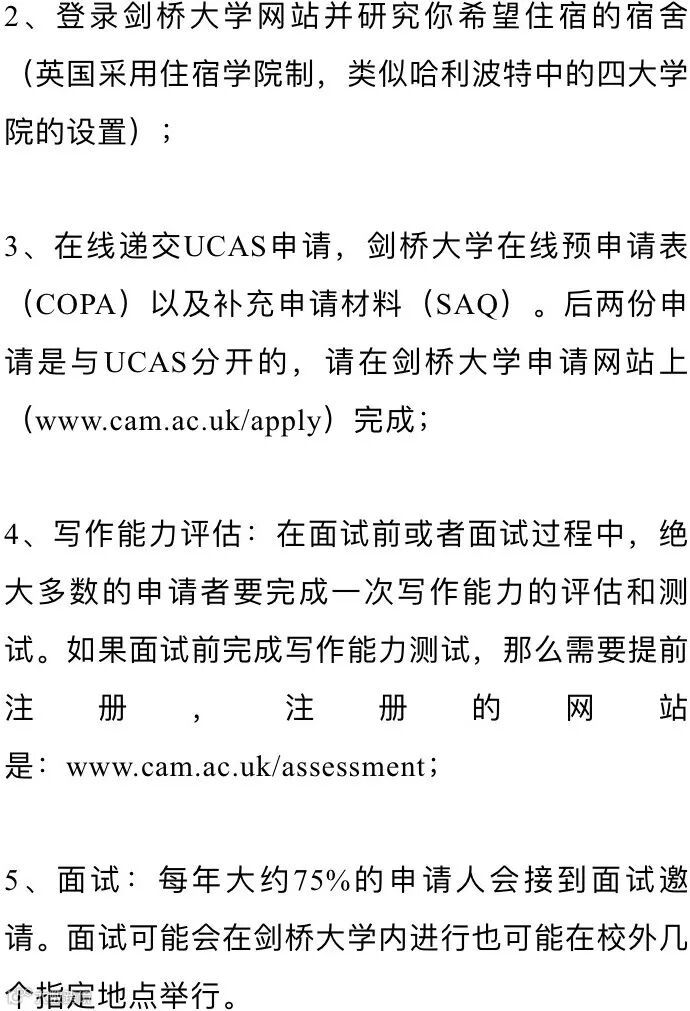 (www.cam.ac.uk/courses)选择自己心仪的专业并研究相关的申请要求;