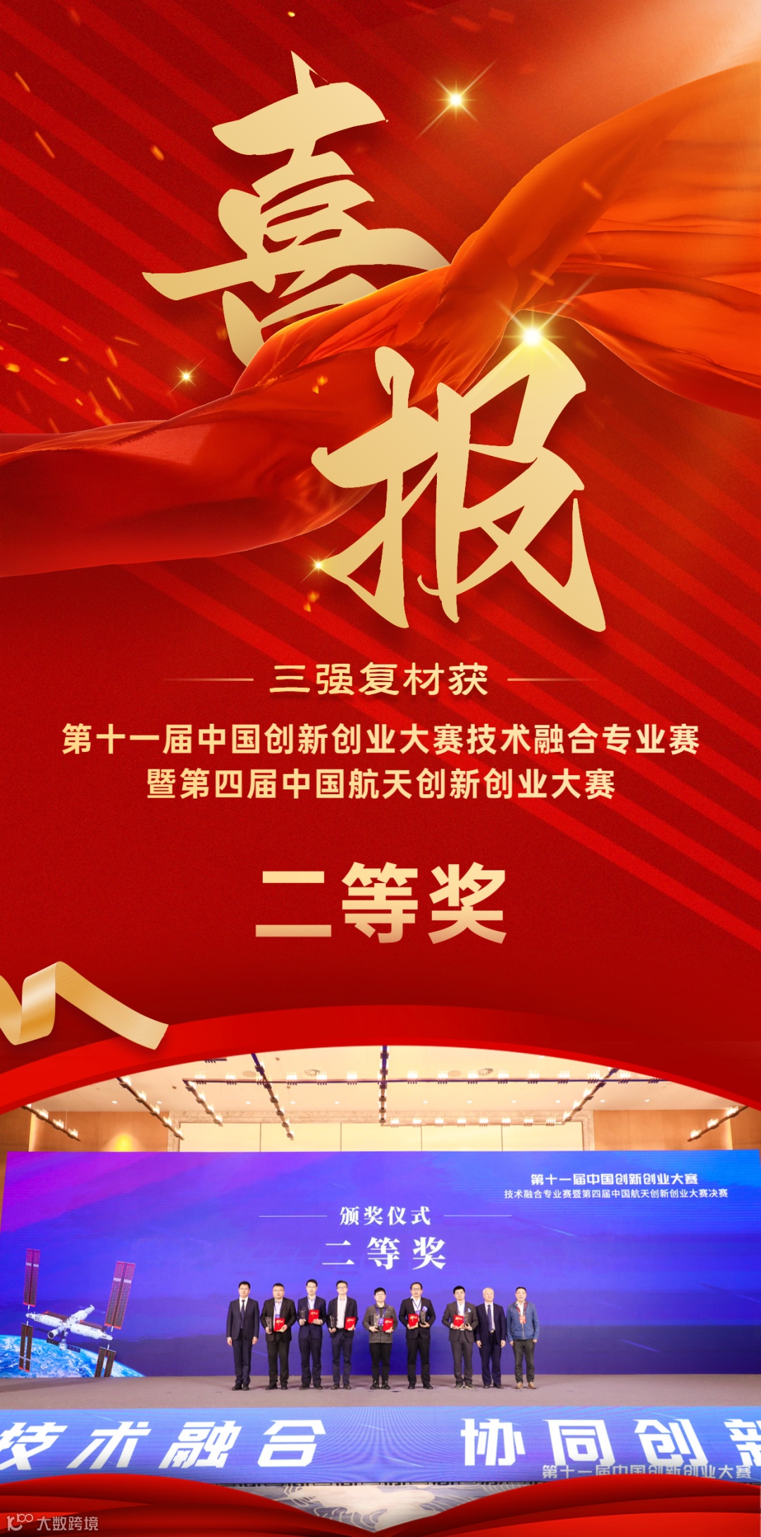 近日,第十一届中国创新创业大赛技术融合专业赛暨第四届中国航天创新创业大赛决赛在青岛胶东举行。位于常州滨江经济开发区的江苏三强复合材料有限公司以“结构防热一体化复合材料舱段研制及产业化项目”一路过关斩将,获得大赛创业组二等奖!