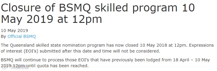 由于从联邦重新争取到的配额再次用尽,昆州州政府于5月10号再次关闭州担保申请,州政府仍然有可能给4月18号到5月10号期间递交的申请发放邀请。州政府会等新财年7月再重新开放州担保申请,到时候大家需要递交新的EOI申请才可以。
