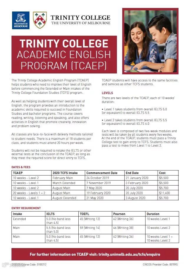 墨尔本大学预科学院Trinity College推出全新语言课程:TCAEP – Trinity College Academic English Program!