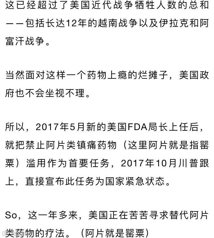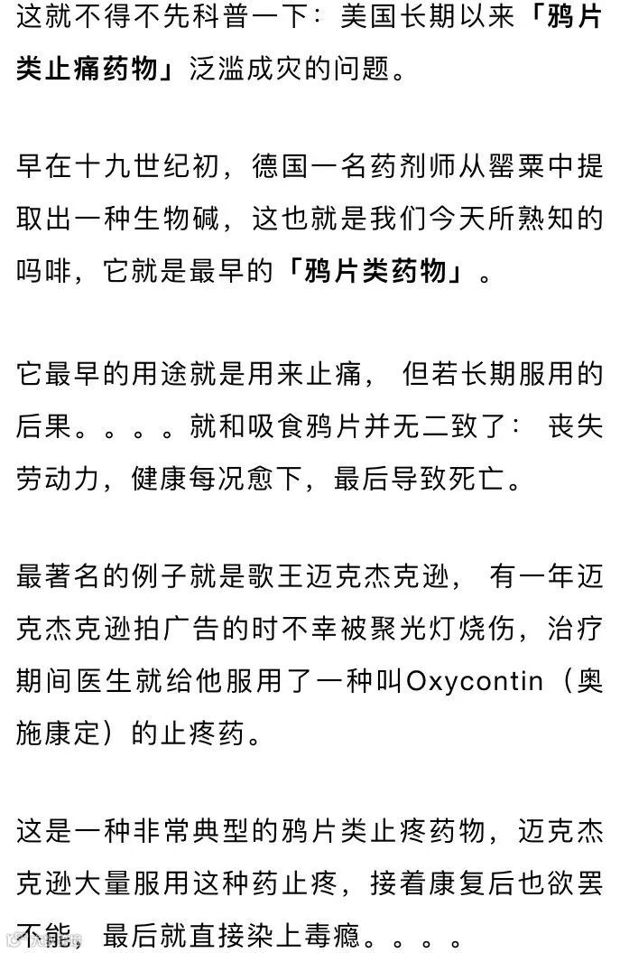 刚开始,他们确实有开刀、骨折等病痛,也确实有必要使用止痛药,从某种程度来说,止痛药中效果较好的确实是鸦片类止疼药物,但一再延长使用,依赖成瘾,就等同于陷入万劫不复的深渊了。