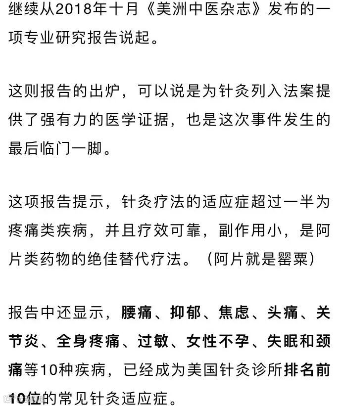 最最关键的是:这项方案将会被联邦保险(Medicare)覆盖,也就是说针灸治疗将纳入美国「医保」!