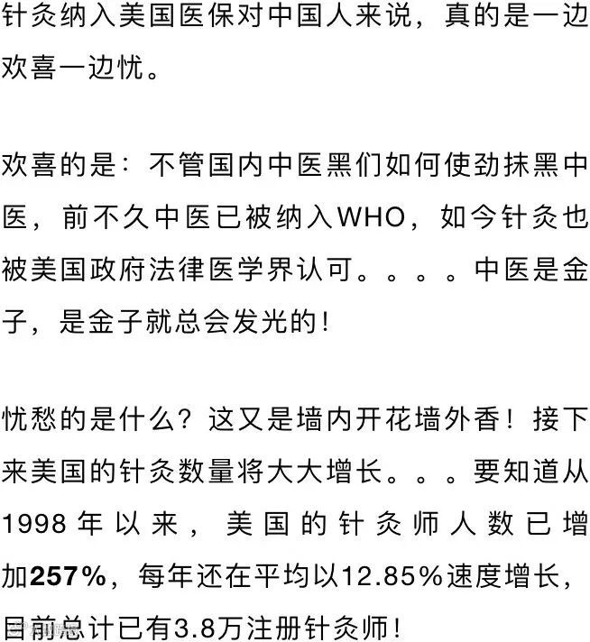 因为,也许不久的将来,都不用你们黑了,我们中国人就要跑去美国学习针灸了!