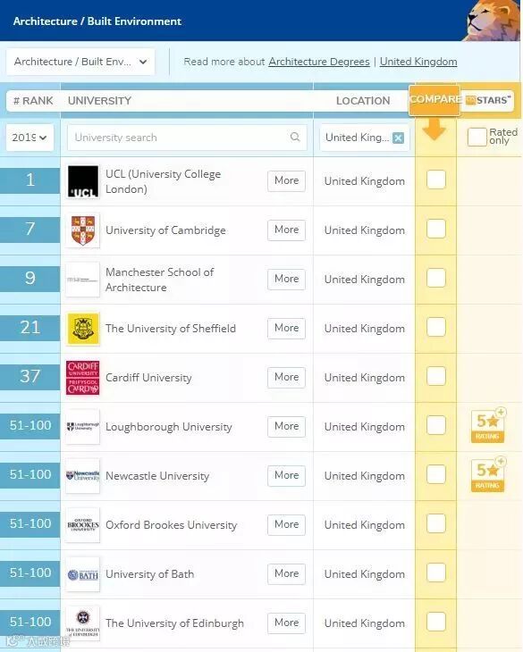 2019,QS建筑排名,UCL第一!MIT第二