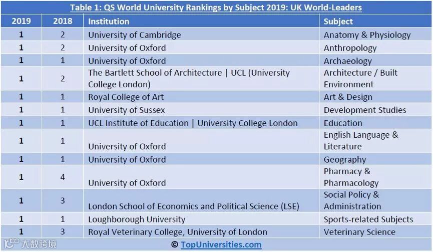 英国大学并未受到“脱欧”影响,持续霸榜!英国大学拿下13个第一名,比去年增加了3所。