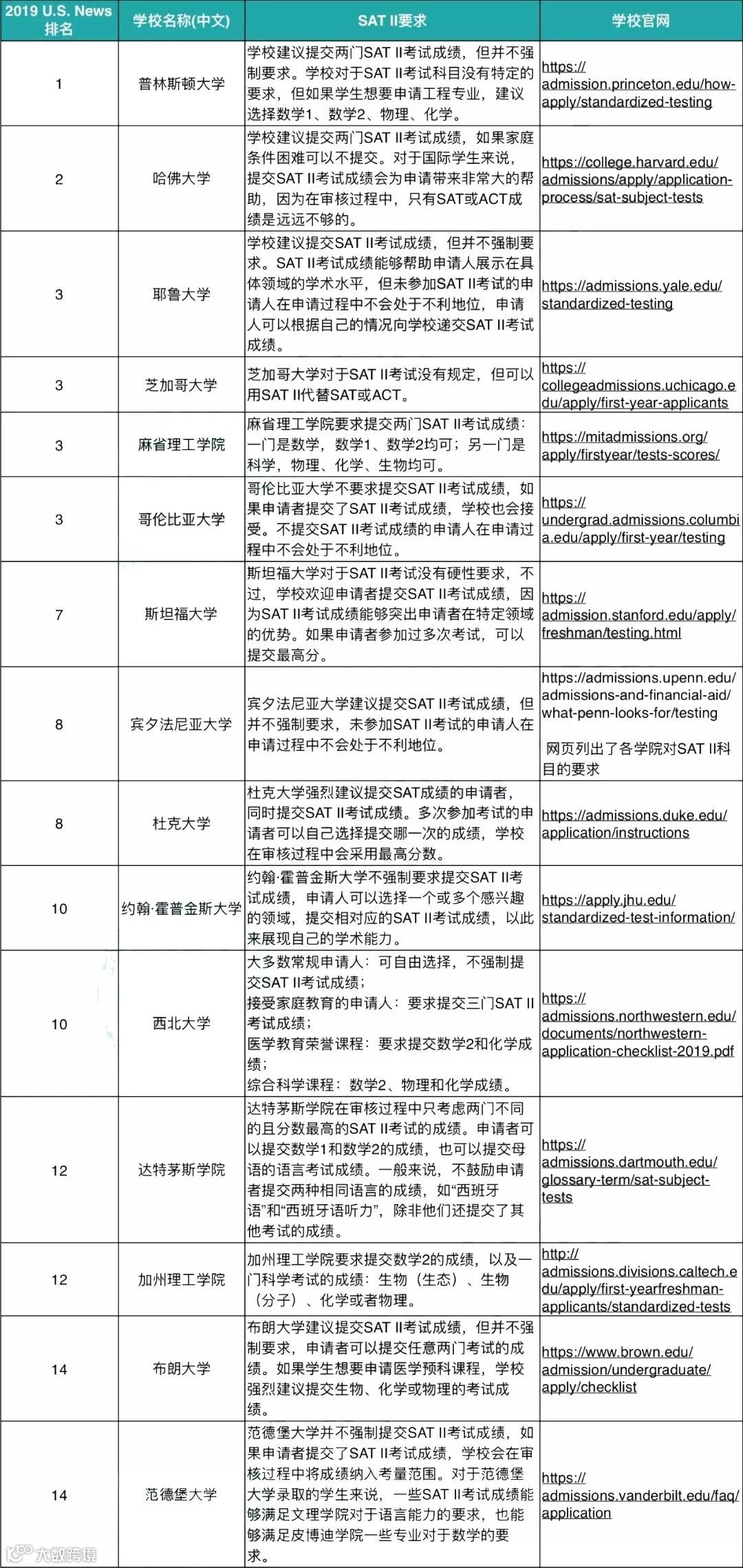 为了更好地解答大家的疑惑,我们先来总结一下大学对SAT II的要求。